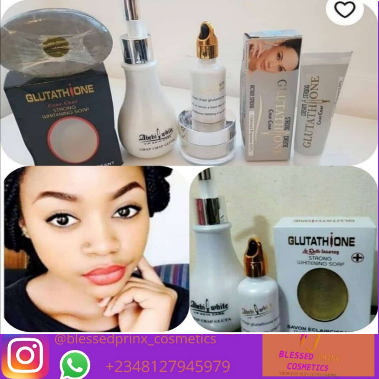 ABEBI WHITE VIP SKIN CARE CHAP CHAP FAST ACTION WHITENING GLUTA MILK + ABEBI STRONG 18k GOLD WHITENING SOAP+ INTENSE EXTRA FORT WHITENING SERUM + LUMINOUS WHITENING FACE CREAM 4PCS SET