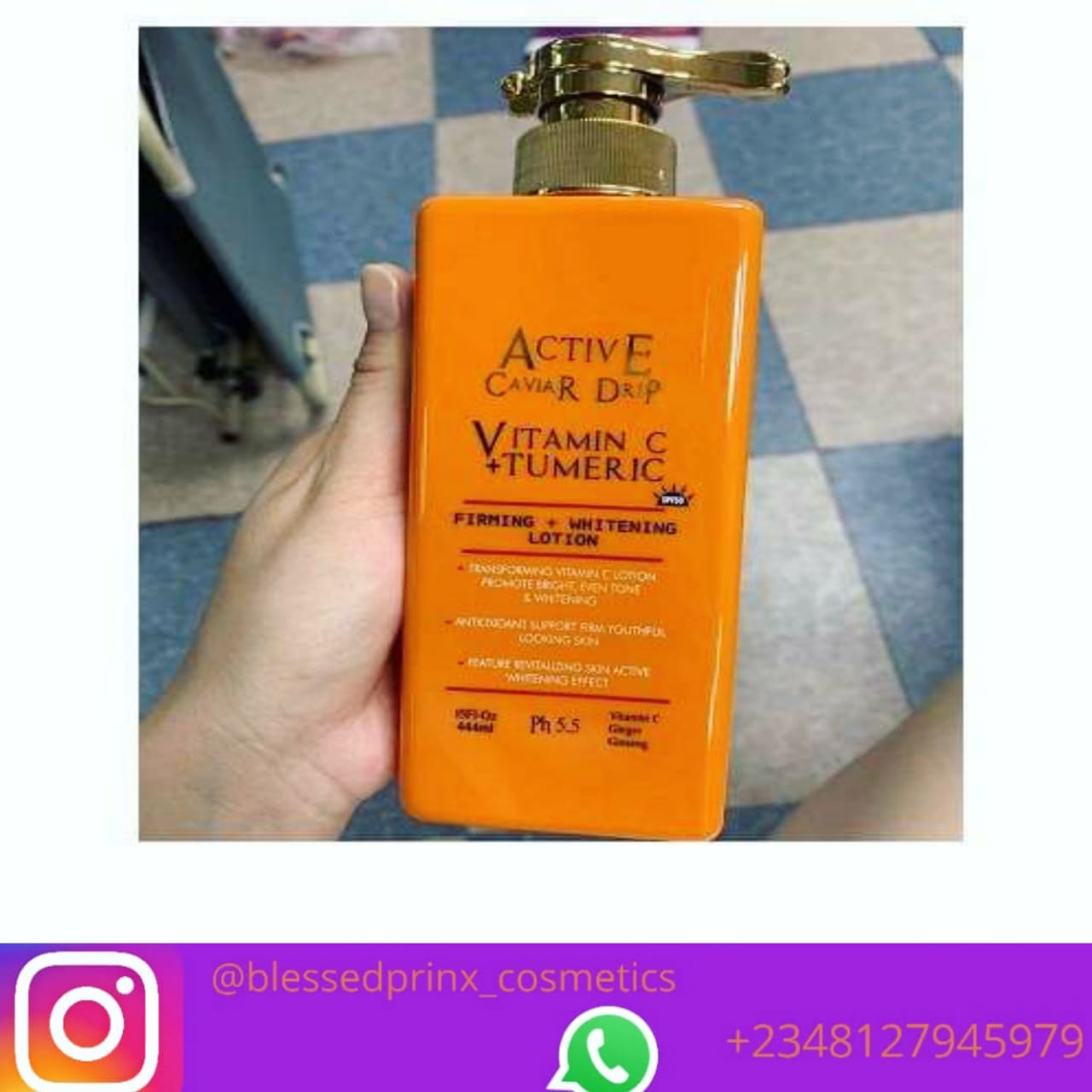 Active Caviar Drip Vitamin C + Turmeric Body Lotion is a transforming lotion that made with natural ingredients from Tumeric and Vitamin C to lightens your complexion and also provides a range of benefits for a healthy Skin including lightening your Skin, Anti Ageing, Anti Inflammatory effects and visible balanced skin tone.