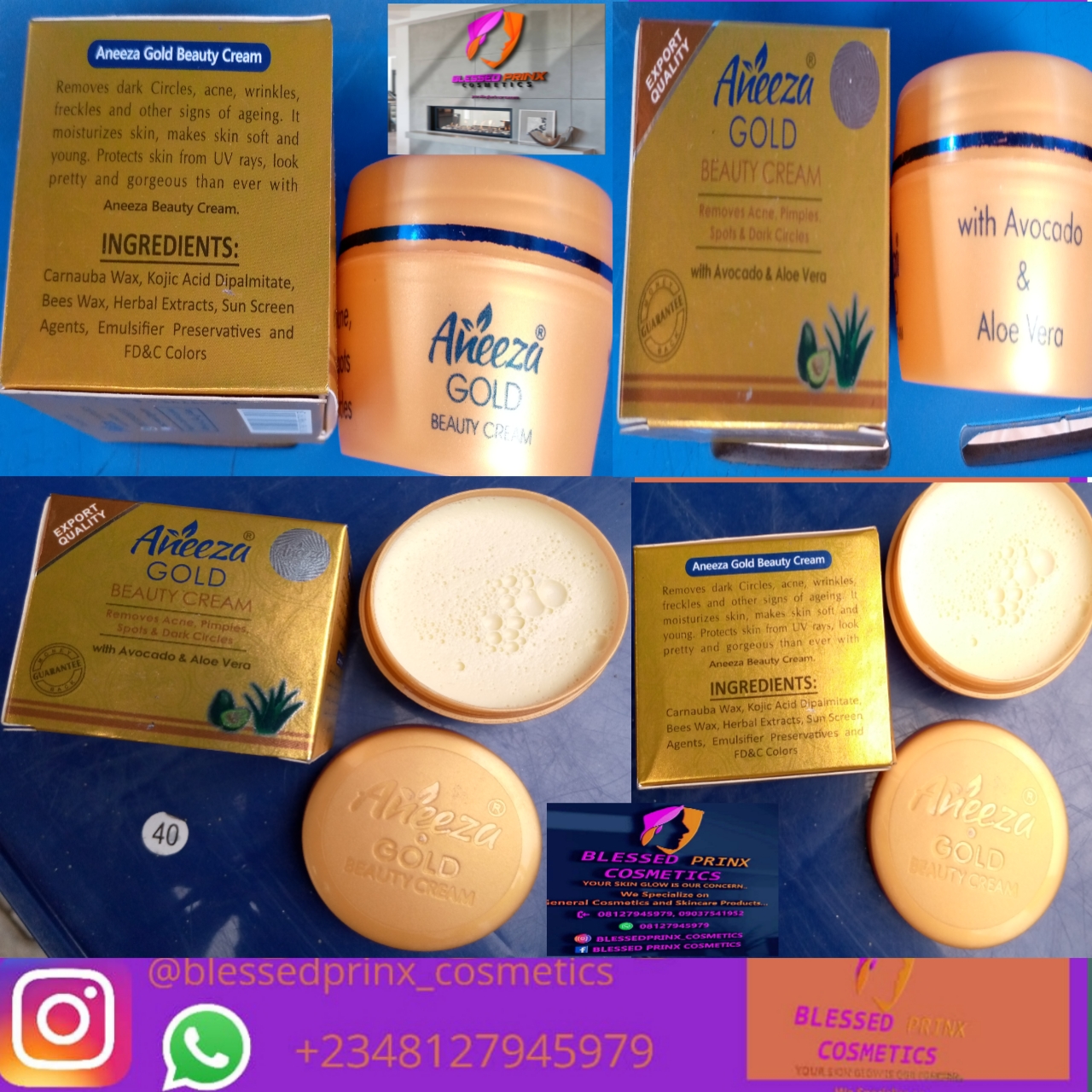 Aneeza Gold is an advanced fast action skin whitening cream that not only whitens but removes acne, dark spots, pimples and other skin blemishes. Made of natural Avocado with high skin repairing capability. And Aloe vera. Skin whitening with Aneeza Gold cream is fast.