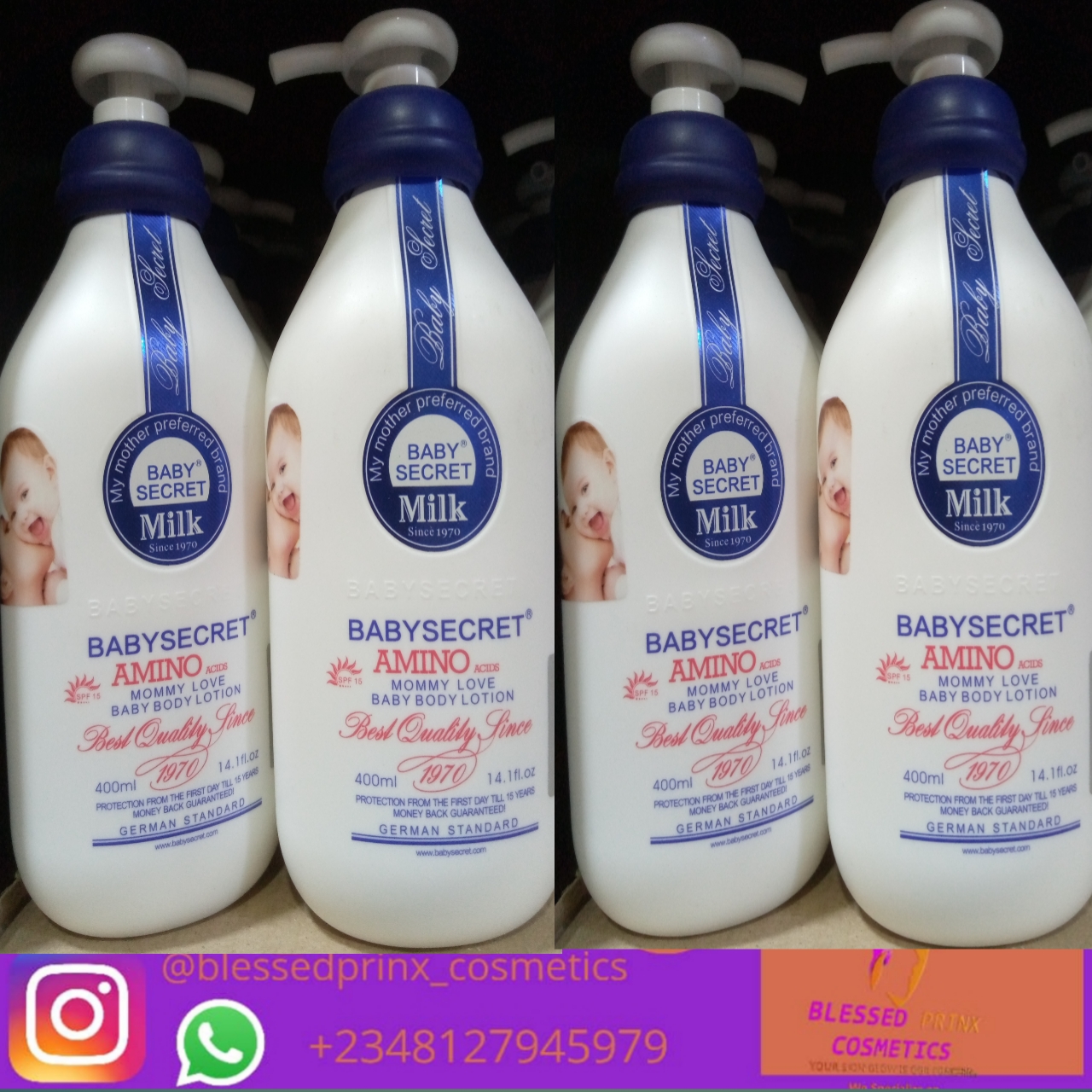 Babies have delicate skin that loses water faster than adults skin. Baby Secret Moisturizing Lotion serves as an effective replenishment for skin water loss. The lotion firmly locks water into place by forming a protective film on baby’s skin’s surface all day long. It also nourishes every inch of baby’s skin leaving it gentle and tender. Pediatrically and dermatologically tested, the lotion is hypoallergenic and healthy for all skin types.