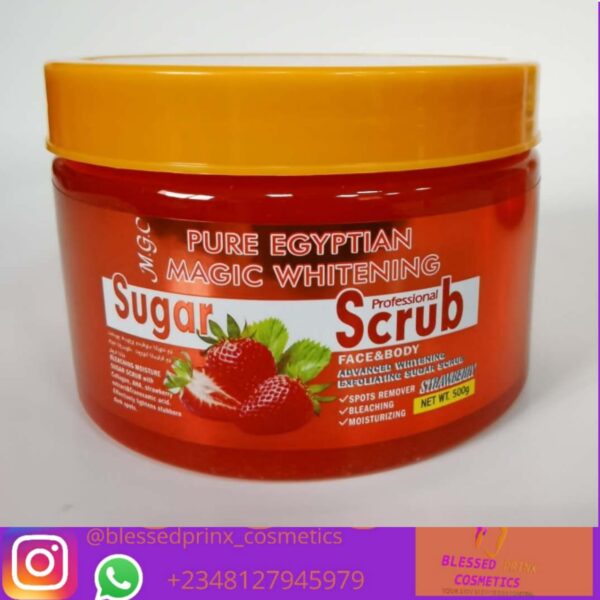 PURE EGYPTIAN MAGIC WHITENING SUGAR SCRUB FACE & BODY STRAWBERRY is an advanced whitening & exfoliating sugar scrub which helps to fade spots, moisturize & Brighten your skin