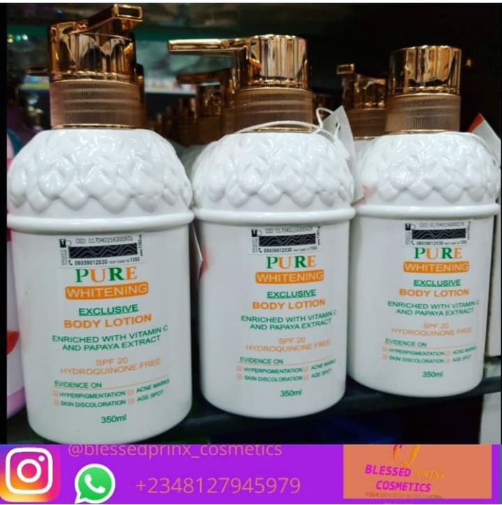 PURE WHITENING EXCLUSIVE BODY LOTION IS FORMULATED WITH PAPAYA EXTRACT FOR SPECIAL WHITENING BLENDED WITH NATURAL INGREDIENTS TO LIGHTEN YOUR SKIN, PROTECT AGAINST UV DAMAGE AND AGEING, UNIFIED AND MAKE YOUR SKIN SOFT & SMOOTH. ENRICHED WITH VITAMIN C